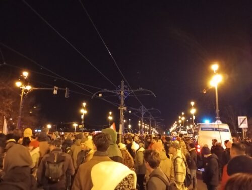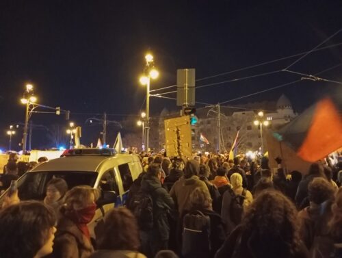 A két keddi demonstráció közül a másodikra értünk ki, a Momentum által szervezett, korábban kezdődő tiltakozásról az onnan érkező barátok beszámolóiból és különféle “guruló dollárokból finanszírozott médiumokból” (vigyázz, irónia!) tájékozódtunk. Mindannyiunknak az volt a várakozása, hogy a két tüntetés egyesülni fog, hiszen időben és térben is közel voltak egymáshoz – ez pár óra múlva meg is történt. Este hét óra környékén a Szabadság téren meghallgattuk a beszédeket, amelyekben egyértelműen érezhető volt a felfokozott hangulat, és nem unalomból rántották össze pár óra alatt ezt az eseményt, hanem dühösek – teljes joggal. Zengtek a rigmusok, a legfontosabb üzenet innen az “Egy megoldás: ellenállás!” volt.