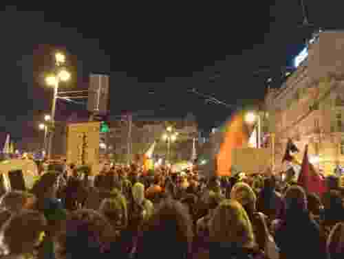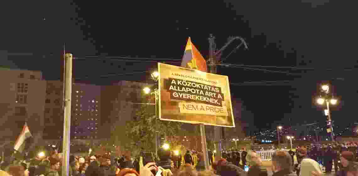 A két keddi demonstráció közül a másodikra értünk ki, a Momentum által szervezett, korábban kezdődő tiltakozásról az onnan érkező barátok beszámolóiból és különféle “guruló dollárokból finanszírozott médiumokból” (vigyázz, irónia!) tájékozódtunk. Mindannyiunknak az volt a várakozása, hogy a két tüntetés egyesülni fog, hiszen időben és térben is közel voltak egymáshoz – ez pár óra múlva meg is történt. Este hét óra környékén a Szabadság téren meghallgattuk a beszédeket, amelyekben egyértelműen érezhető volt a felfokozott hangulat, és nem unalomból rántották össze pár óra alatt ezt az eseményt, hanem dühösek – teljes joggal. Zengtek a rigmusok, a legfontosabb üzenet innen az “Egy megoldás: ellenállás!” volt.