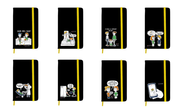 A6 méretű, sima, gumis notesz, 8 féle grafika - Kattints a képre, hogy egyenként, nagyobban is megnézhesd az összeset!
